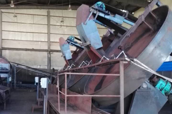 三臺圓盤造粒機(jī)工作中……